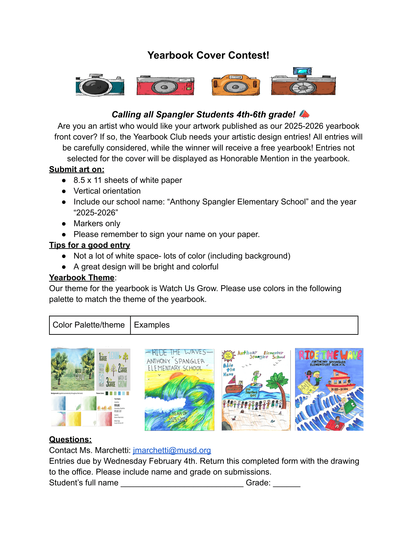 Want your art in the 2025–2026 yearbook? Design a cover inspired by our theme, Watch Us Grow, and submit it by February 4!